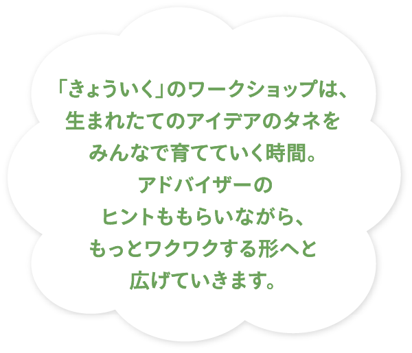 自分の思いやアイデアを提案し、仲間を巻き込みながら、実現に向けて動き出すきっかけをつくります。