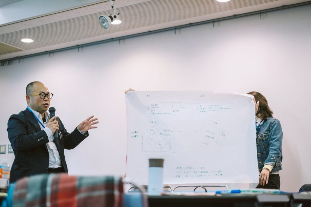 ワークショップ後半では、4つの事業ごとに分かれ、より具体的なプランへと磨き上げる時間が設けられた。前半の講演で投げかけられた「学びの中身をどう更新するか」「地域と学びはどう結びつきうるのか」という問いを受け、それぞれの構想は一段階、現実に近づいていった。