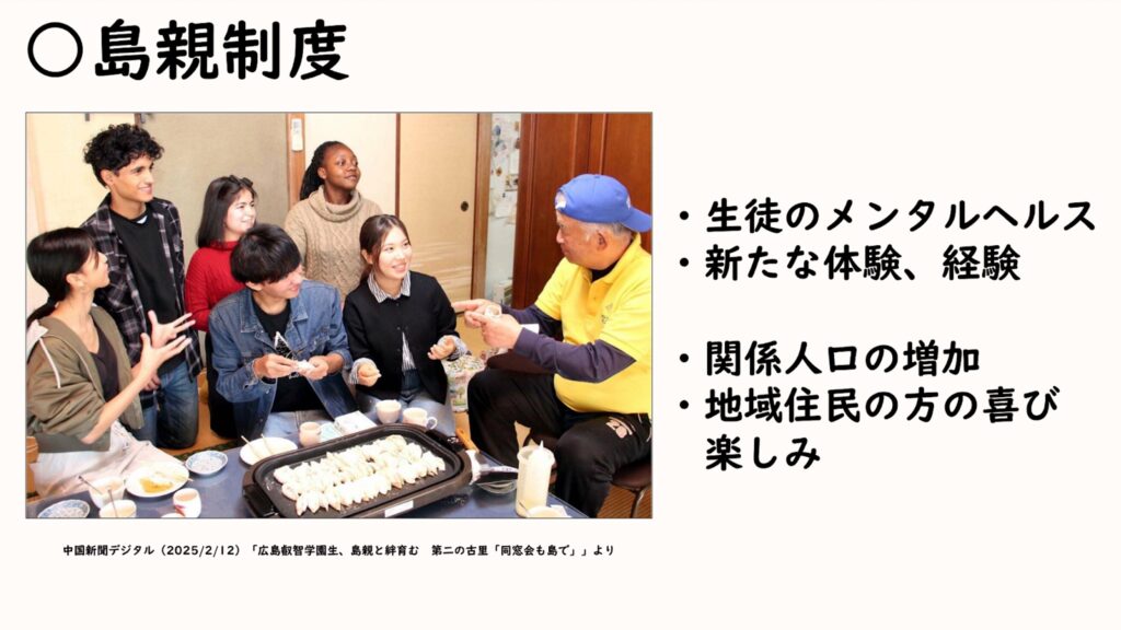 島の住民が生徒の成長を見守る「島親制度」、高齢者へのデジタルサポート、地域の魅力を英語で発信する取り組み。